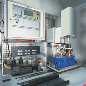 下图所示为缸盖燃烧室容积测量台。 在测量开始时,一个精确定量的气体从高压参考容器注入到燃烧室中。经过平衡稳定之后的压力即为测量被测容积的基准。该系统可直接测量并显示被测容积的绝对大小或相对于标准容
